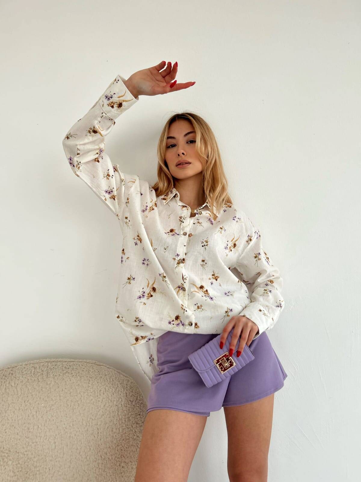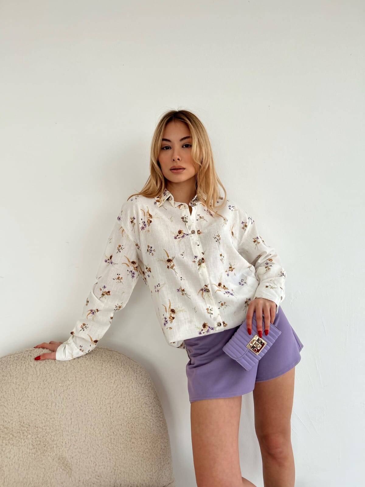 Çiçek Desenli Keten Gömlek