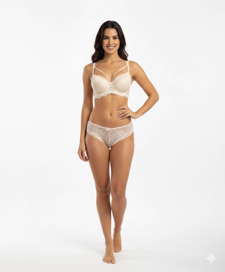 Ekru Destekli Çapraz İpli Sutyen Takım
