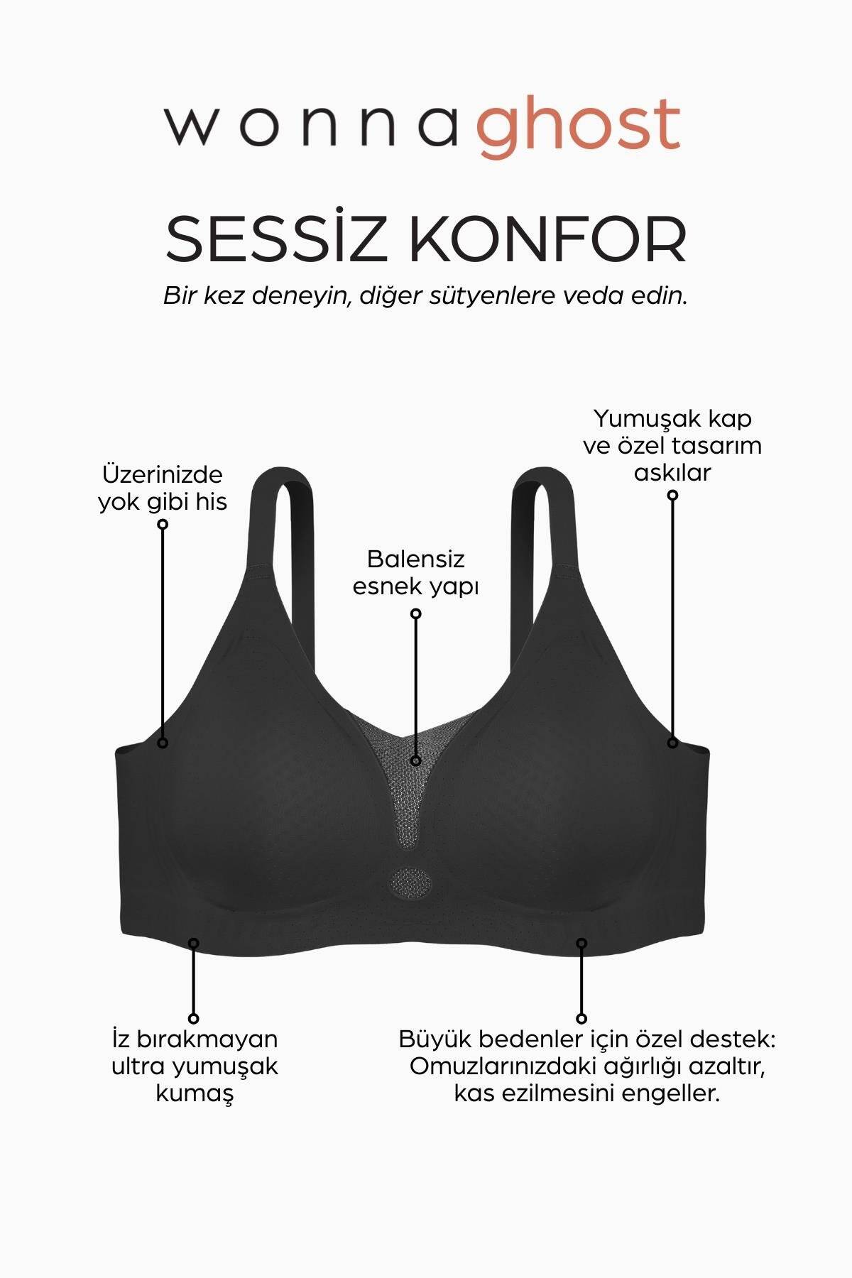 Ghost Siyah Dikişsiz Lazer Kesim Desteksiz Sutyen