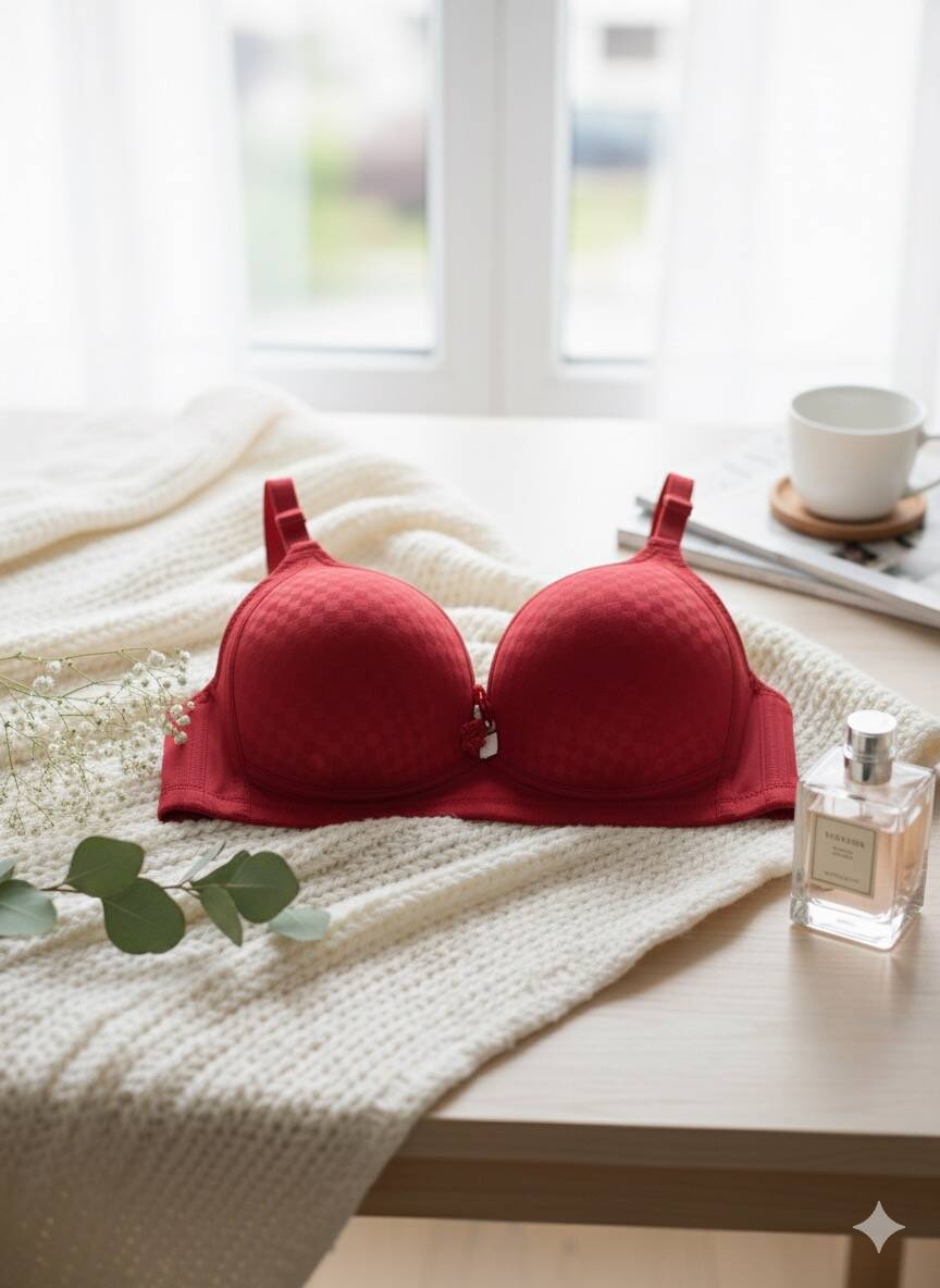 Kırmızı Baklava Desen Telsiz Desteksiz Toparlayıcı Sutyen