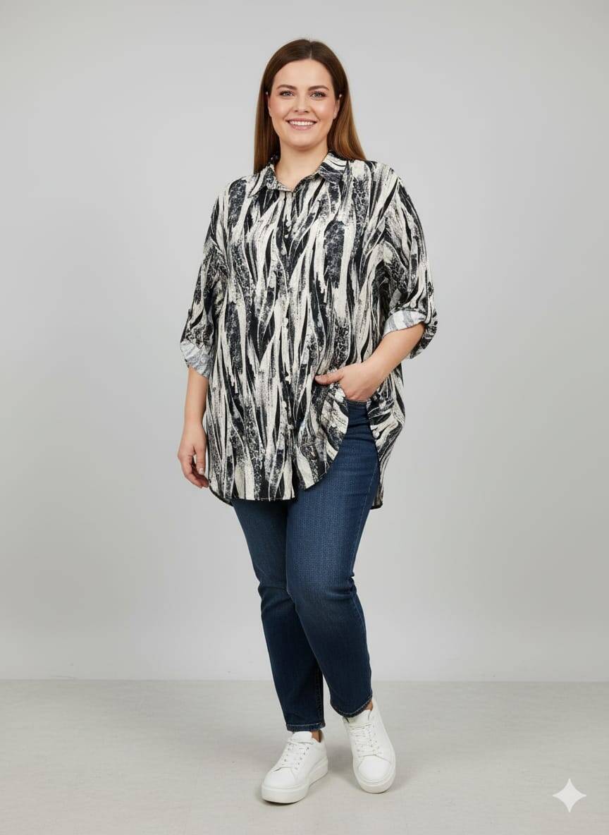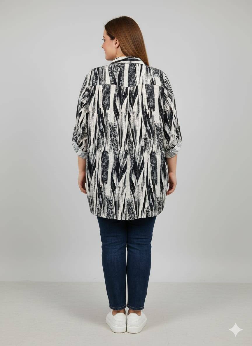 Siyah Desenli Büyük Beden Gömlek