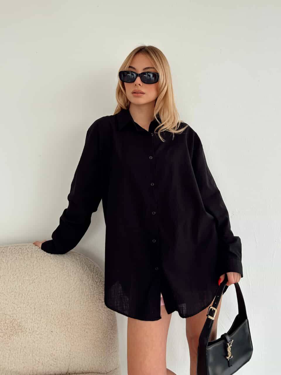 Siyah Keten Gömlek