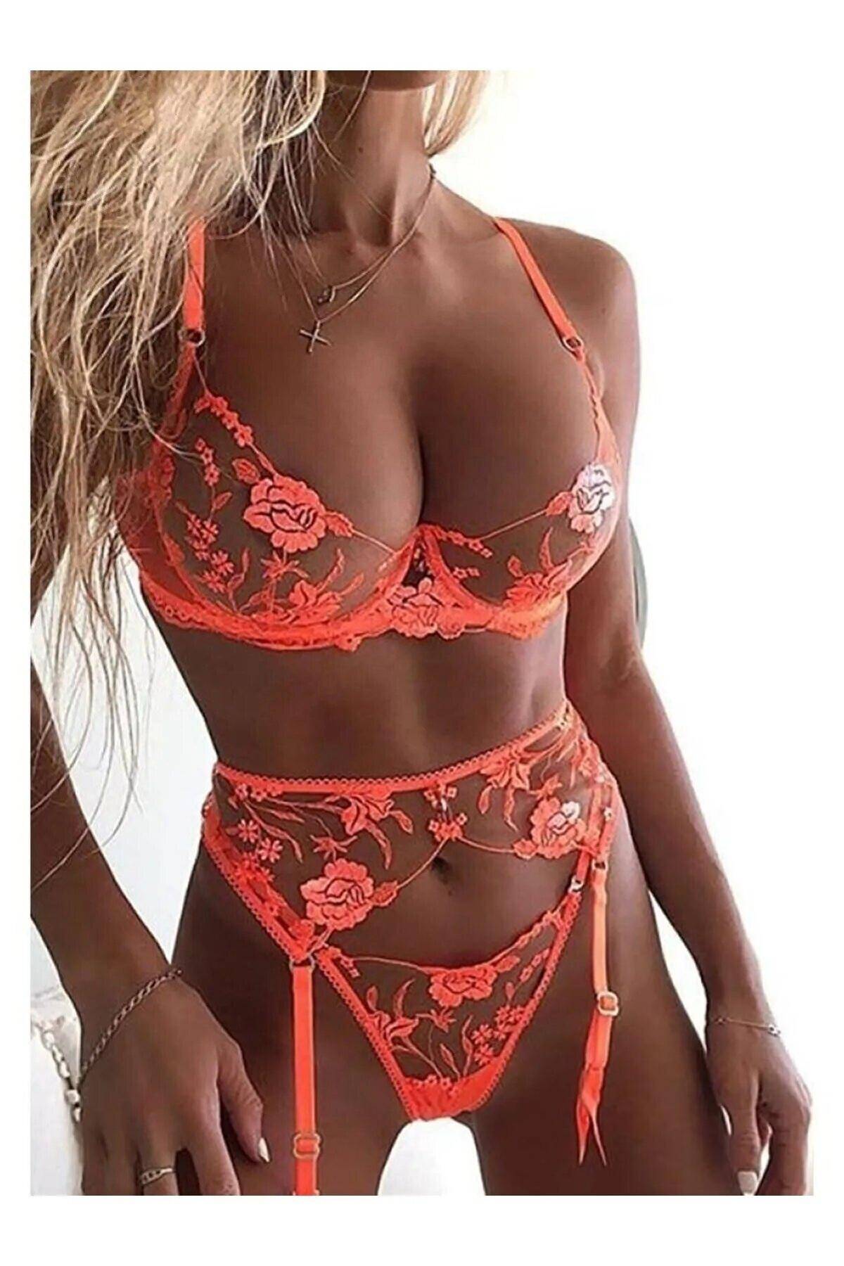 Turuncu Dantel Fantazi Jartiyer Takımı